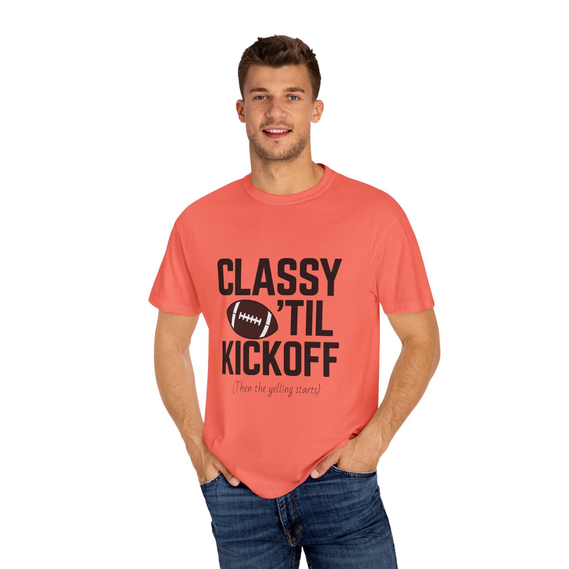 Classy Football T-Shirt | Unisex Garment-Dyed Tee for Game Day, Tailgating, Party Wear, Sports Fans, Gift Ideas
